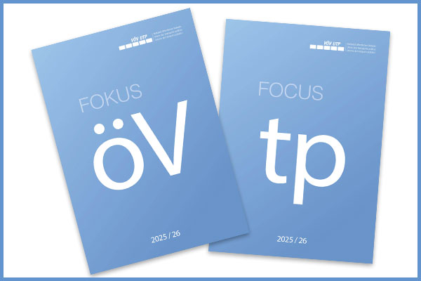 MehrDas Jahresmagazin «FOKUS öV» verschafft einen Überblick über aktuelle und wichtige Themen des VöV. Die im Herbst erschienene Ausgabe 2025/26 beleuchtet schwergewichtig die Bedeutung des öV für die Schweiz, dies unter anderem in Interviews mit Vertreterinnen und Vertretern aus der Branche sowie der Politik. Interessierte können das Magazin hier bestellen oder als PDF herunterladen.